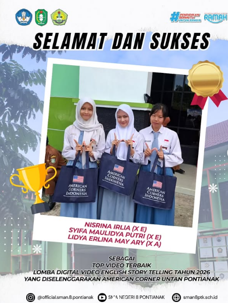 Atas prestasinya sebagai Top Video Terbaik Lomba Digital Video English Story Telling Tahun 2026 yang diselenggarakan oleh American Corner Universitas Tanjungpura Pontianak.