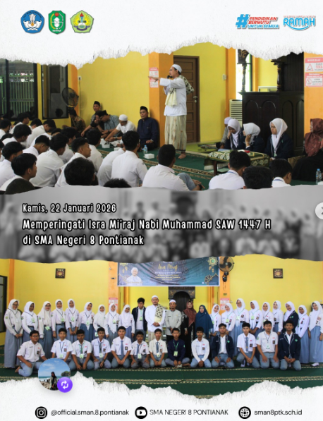 Kegiatan memperingati Isra Mi'raj Nabi Muhammad SAW 1447 H di SMA Negeri 8 Pontianak.