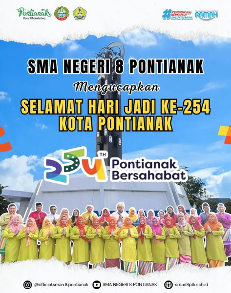 Kami keluarga besar SMA Negeri 8 Pontianak mengucapkan, "Selamat Hari Jadi ke-254 Kota Pontianak, Pontianak Bersahabat!".