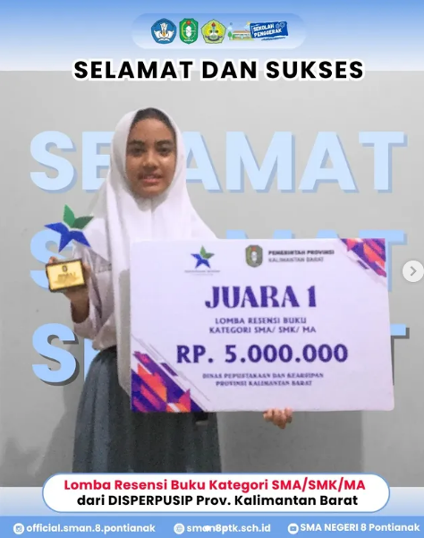 Sebagai JUARA 1 Lomba Resensi Buku Kategori SMA/SMK/MA Tahun 2025 dari Dinas Perpustakaan dan Kearsipan Provinsi Kalimantan Barat.