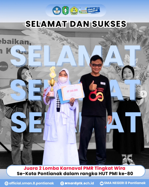 Selamat kepada PMR WIRA SMAN 8 PONTIANAK (@pmr.wirasmandel ) , telah meraih Juara 2 Lomba Karnaval PMR Tingkat Wira Se-Kota Pontianak