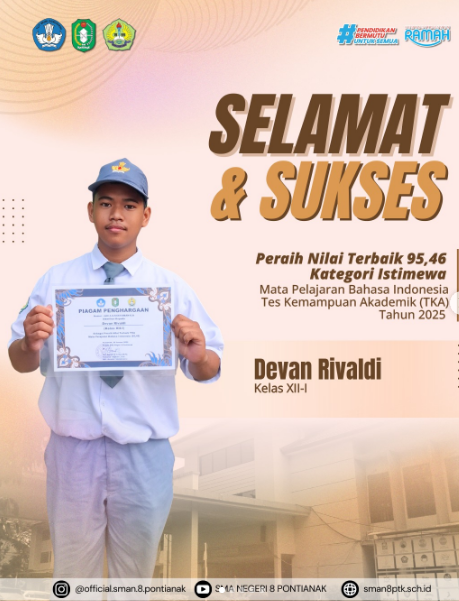 Selamat & sukses atas keberhasilannya sebagai Peraih Nilai Terbaik Kategori Istimewa pada Tes Kemampuan Akademik (TKA) Tahun 2025 .